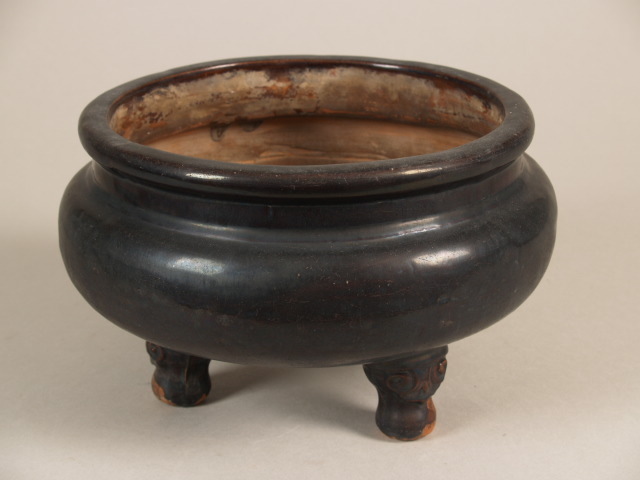| Nederlands | Wierookbrander op 3 voetjes en bedekt met bruin-zwart glazuur |