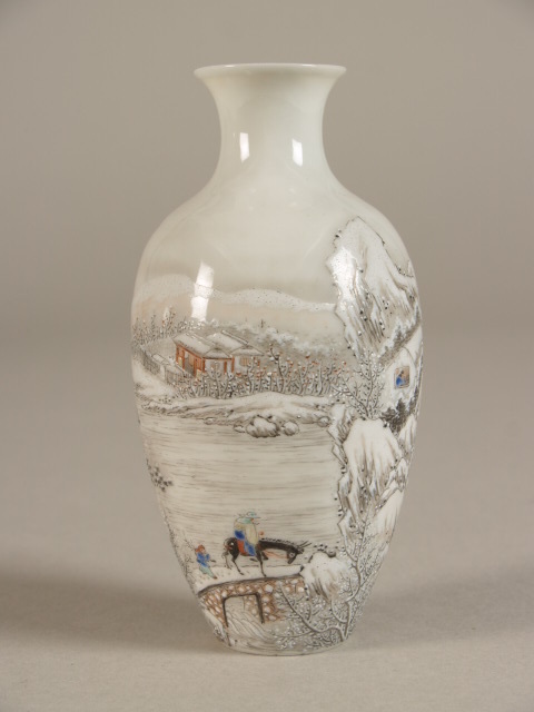 | Nederlands | Vaas met decor van besneeuwd rotslandschap, encre de chine |