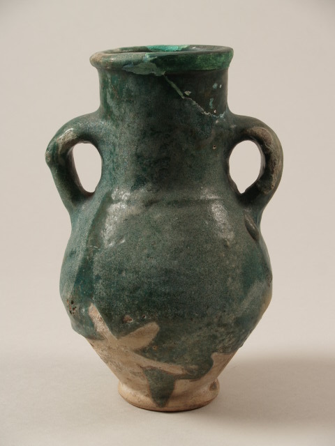 Kruik met 2 oren en gecraqueleerd groen glazuur (Nederlands)