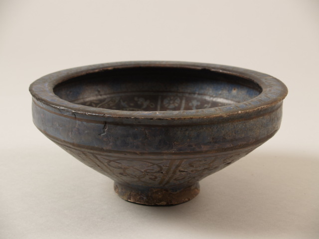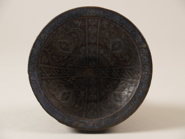Kom met decor van pseudo-schrft en palmetten onder blauw glazuur (Nederlands)