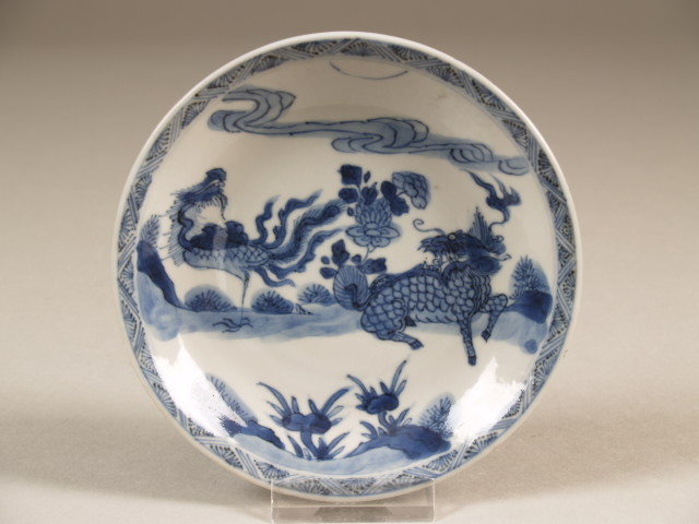 Schoteltje met decor van tuinlandschap met qilin en feniks (Q23088)