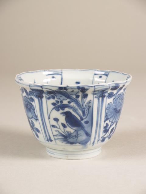 Kraaikop met decor van vakken waarin een vogel of een bloemtak (Q23089)