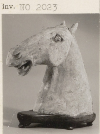Grafplastiek in de vorm van een paardenkop op een voetstuk.||China||Keramiekmuseum Princessehof QNO 02023 |