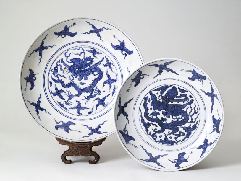 Schaal met decor van draak en kraanvogels (Nederlands)