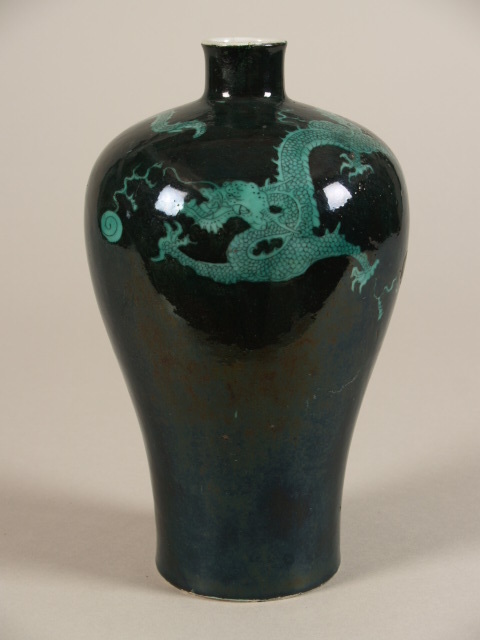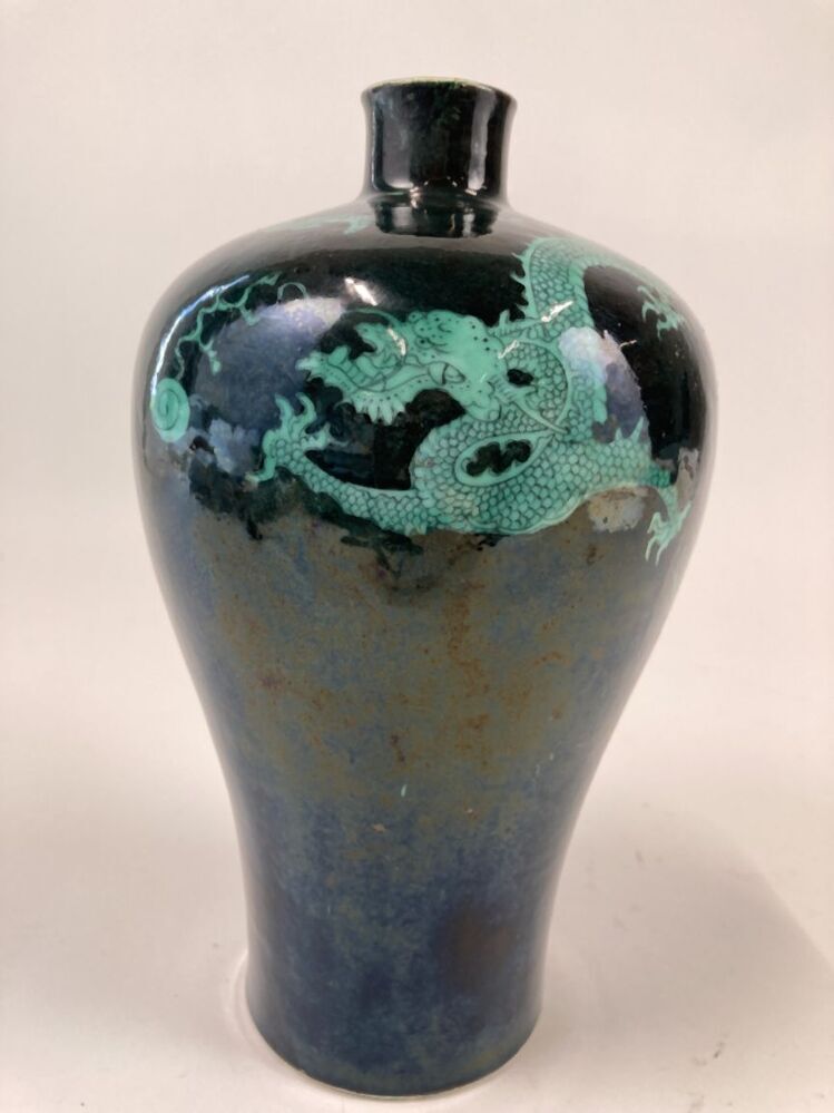 Vaas, meiping, met decor van in zwart uitgespaarde draak (Nederlands)