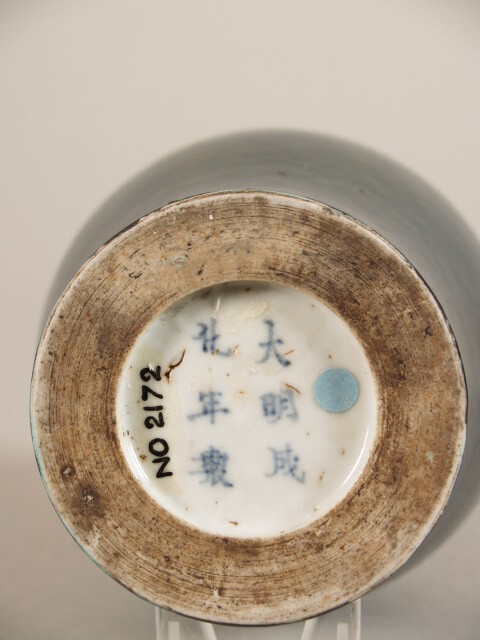 op de bodem in kobaltblauw vertikaal zesmerk Chenghua (Nederlands)