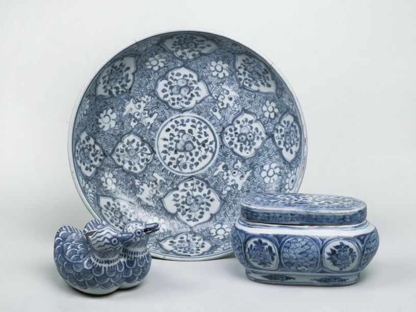 Pot zonder deksel gedecoreerd in onderglazuur blauw. Mandarijn eenden blijven hun hele leven bij elkaar en staan daarom symbool voor huwelijksgeluk. Enkele vergelijkbare exemplaren zijn opgegraven van de Lena junk, die rond 1490 zonk. (Nederlands)