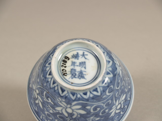 onder op de bodem in kobaltblauw zesmerk Chia-ching in dubbele ring (Nederlands)