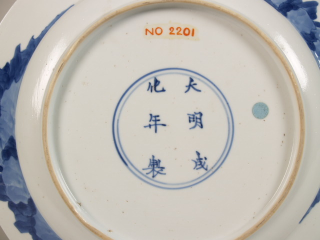 op de bodem in kobaltblauw vertikaal zesmerk Chenghua in dubbele ring (Nederlands)