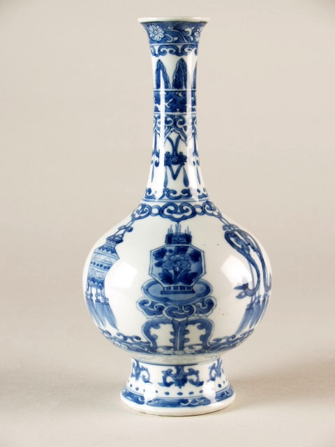 | Nederlands | Vaas, flesvaas, met hoge smalle hals, met decor van symbolen |