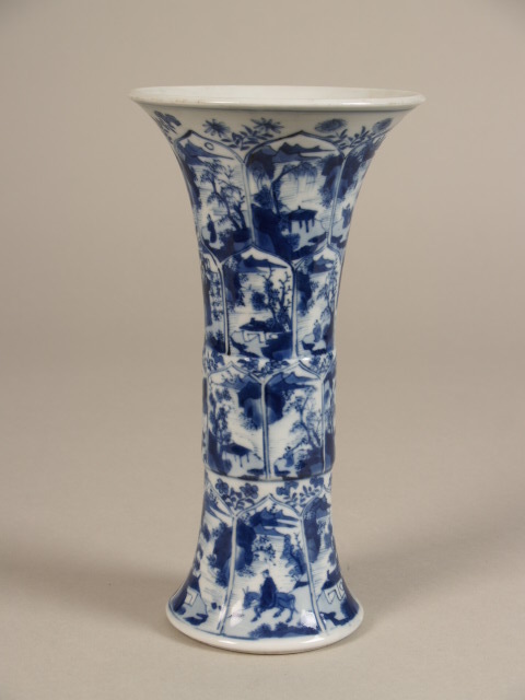 Bekervaas met decor van figuren in rivierlandschap (Nederlands)
