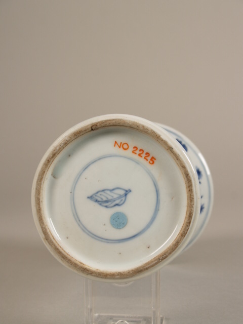 op de bodem in kobaltblauw een artemisia-blad in dubbele ring (Nederlands)