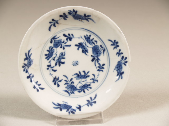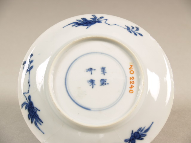 op de bodem in kobaltblauw viermerk Kangxi in dubbele ring. (Nederlands)
