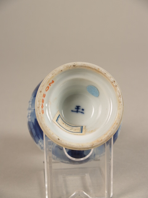 op de bodem in kobaltblauw: "yü" (jade) (Nederlands)