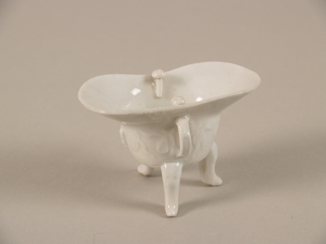 Kop om wijn uit te drinken in de vorm van een jue bronzen tripod||Dehua||Keramiekmuseum Princessehof NO 02263 |