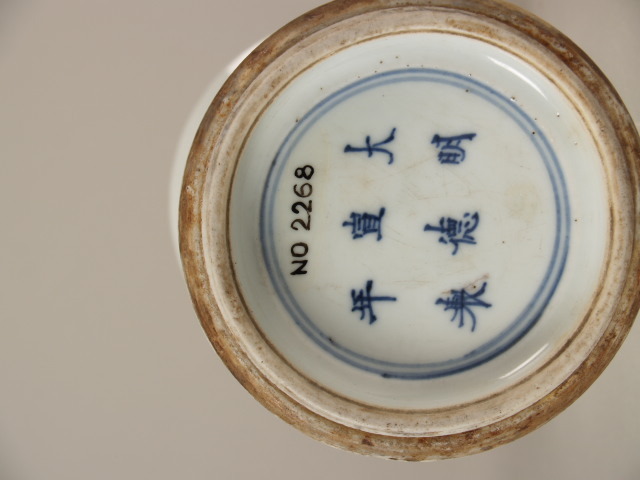 op de bodem in kobaltblauw zesmerk Xuande in dubbele ring (Nederlands)