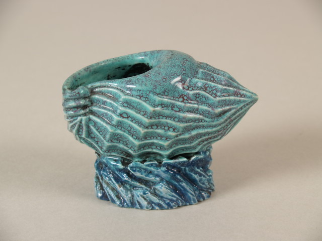 Waterpot in vorm van schelp met robin's egg glazuur (Nederlands)