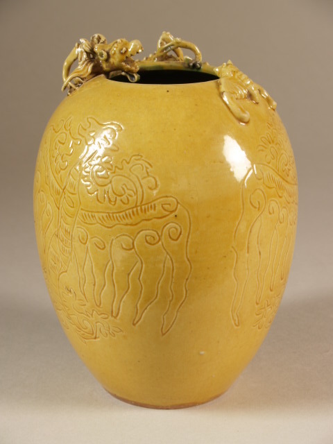 Vaas met decor van ingegraveerde feniksen en bezet met een chilong (Nederlands)