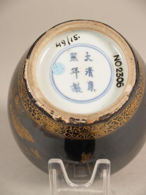 onder op de bodem in kobaltblauw zesmerk Kangxi in dubbele ring (Nederlands)