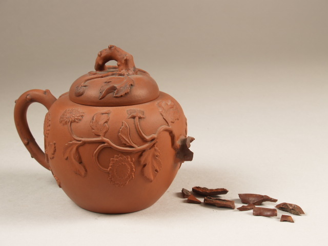 Theepot met decor van chrysanten in reliëf (Q23321)