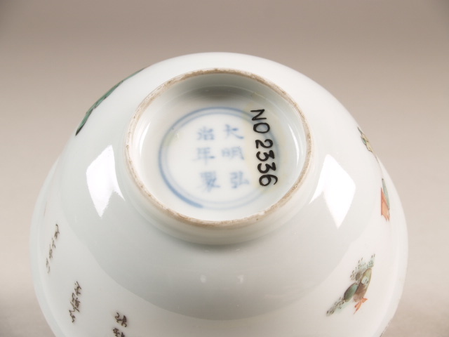 Kom met decor van figuren op wit fond en zwart gelakte binnenzijde, famille verte (Q23328)