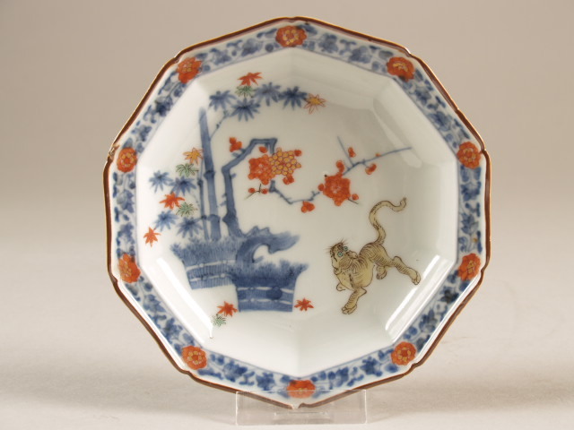 | Nederlands | Schotel met decor van prunus, bamboe en een tijger, kakiemon |