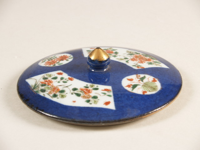 Deksel vergulde knop en polychroom decor van vakken waarin bloemen, famille verte (Q23352)