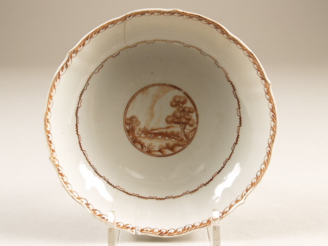Schotel met golvende lip met decor van landschap (Nederlands)
