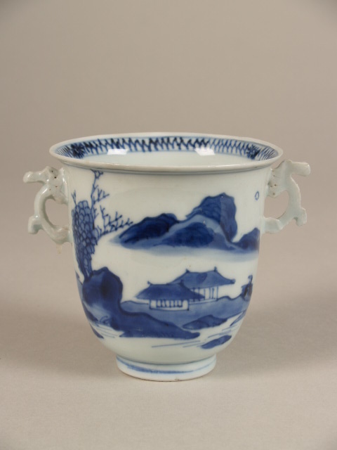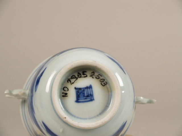 onder op de bodem in kobaltblauw een gelukwens ("fu") in zegelvorm (Nederlands)
