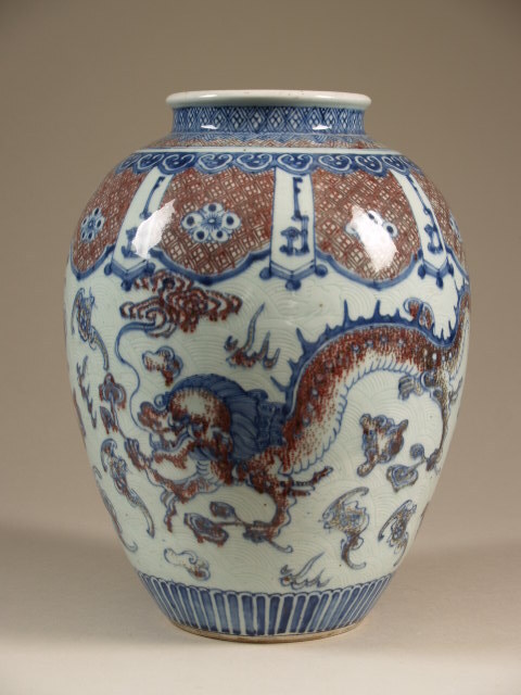 Pot met decor van draken, vleermuizen en ingegrifte golven (Q23475)