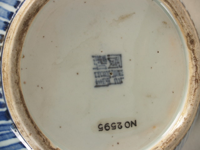 onder op de bodem in kobaltblauw viermerk Qianlong in zegelvorm (Nederlands)