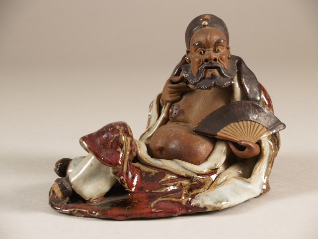 Beeld in de vorm een man, liggend met waaier in de hand, voorstellende een van de acht onsterfelijken (Q23480)