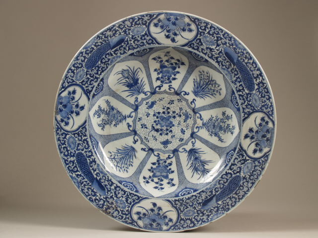 op de bodem in kobaltblauw een lingzhi in dubbele ring. (Nederlands)