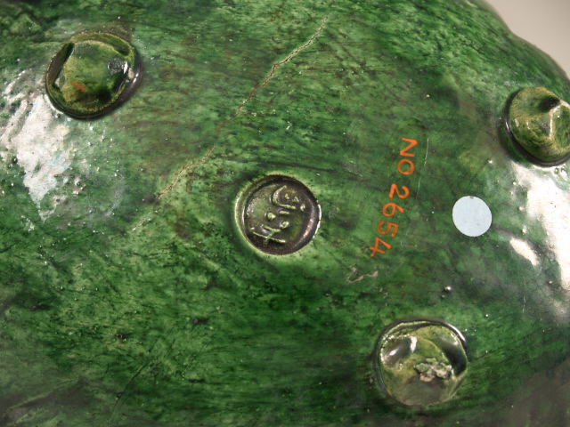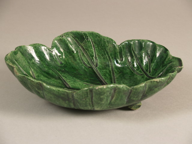 | Nederlands | Schaaltje in de vorm van een blad en bedekt met groen glazuur |