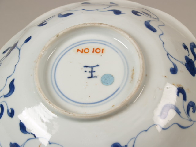 Op de bodem in kobaltblauw: "Yü" (jade) in dubbele cirkel. (Nederlands)