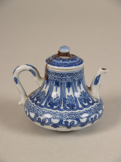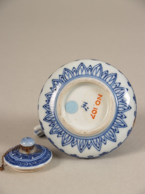 Op de bodem in kobaltblauw: "Yü" (jade) (Nederlands)