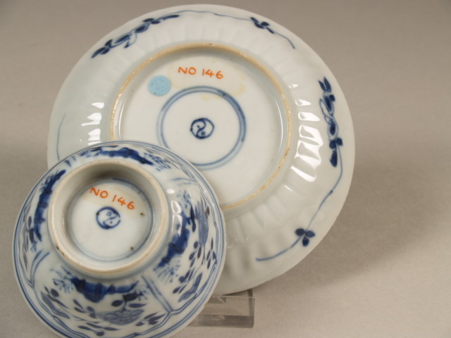 Op beide bodems in kobaltblauw een cirkel met yin/yang in een dubbele cirkel. (Nederlands)