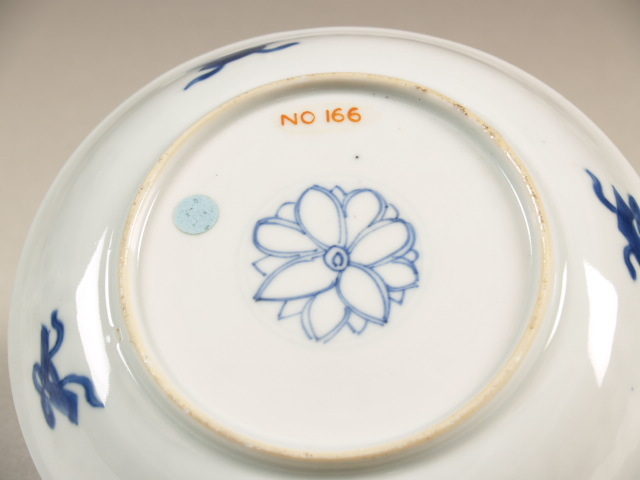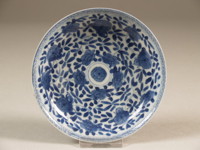 Op de bodem in kobaltblauw een dubbele rozet. (Nederlands)