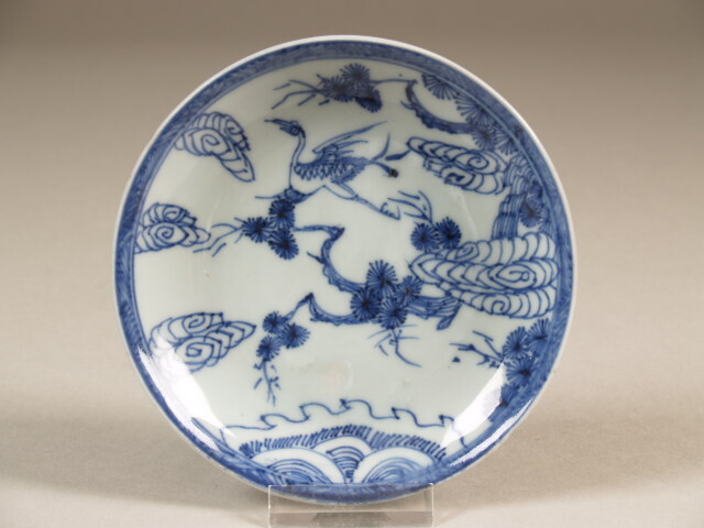 Schoteltje zonder kopje met decor van kraanvogel, pijnboom en wolken (Q23594)