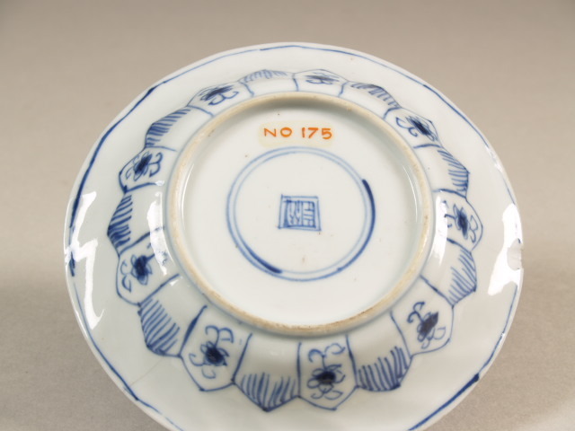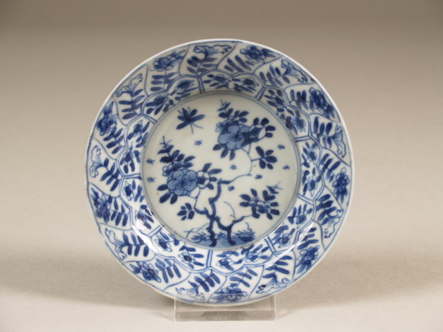 Op de bodem in kobaltblauw een teken (zie kaart) in een dubbele cirkel. (Nederlands)