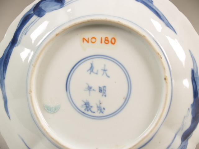 Op de bodem in kobaltblauw een vertikaal Chenghua zesmerk in een dubbele cirkel. (Nederlands)
