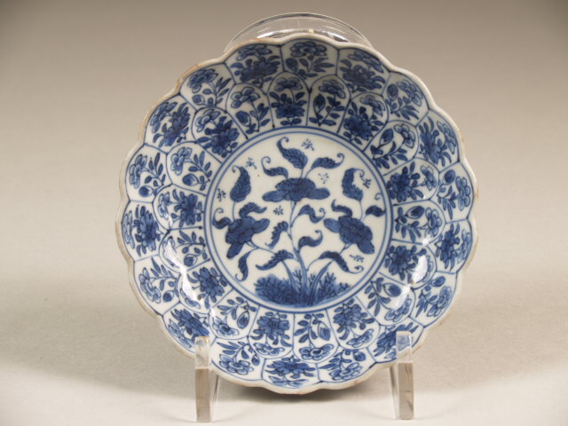 Op de bodem in kobaltblauw een dubbele cirkel. (Nederlands)