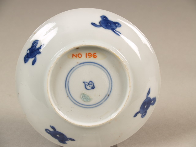 Op de bodem in kobaltblauw een conch shell (oorschelp) in een dubbele cirkel. (Nederlands)