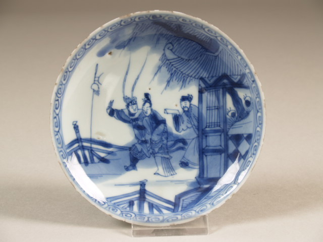 Schoteltje zonder kopje met decor van tuinlandschap met pagode en figuren (Nederlands)