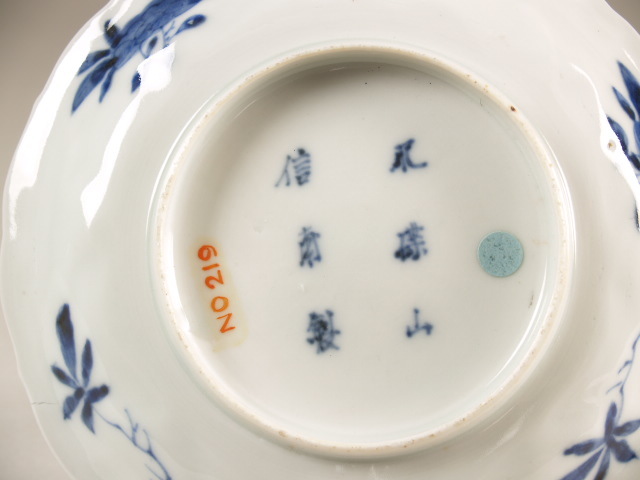 Op de bodem in kobaltblauw een vertikaal zesmerk (zie kaart). (Nederlands)