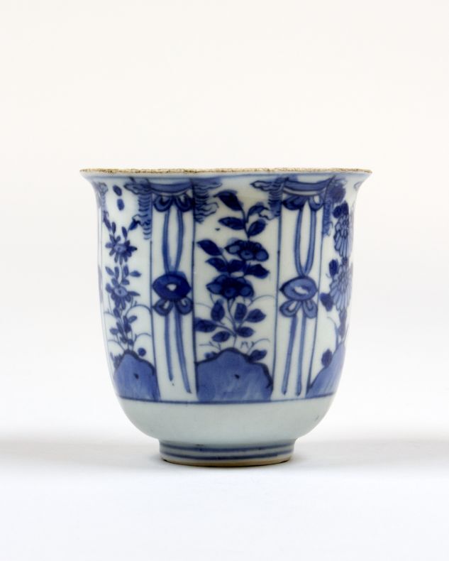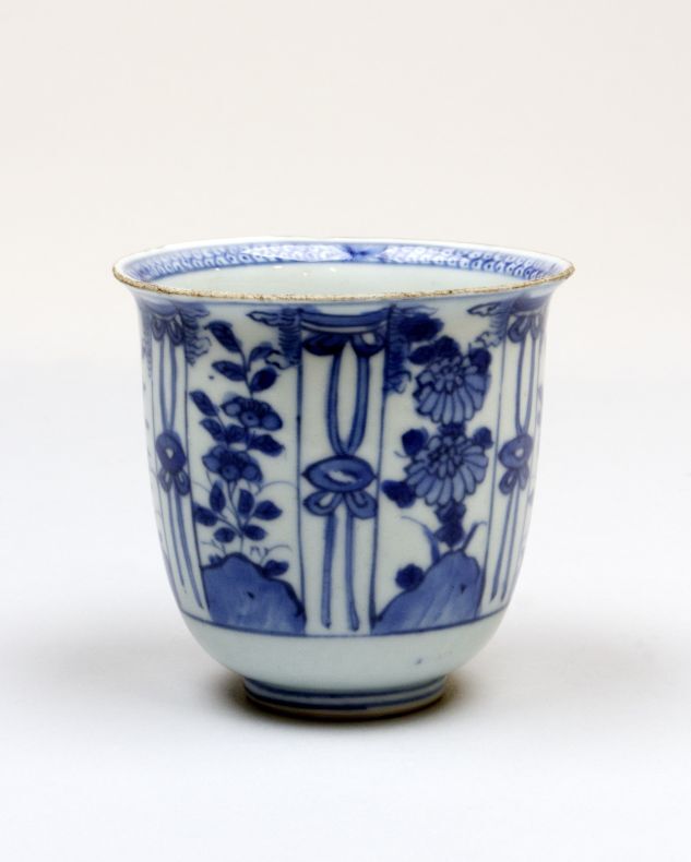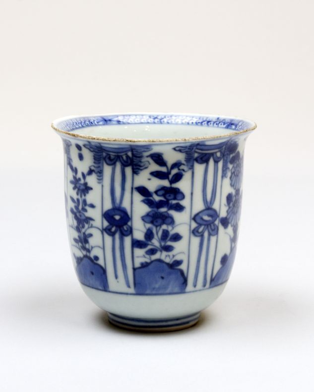 Kop met decor van vakken waarin strikken of bloemranken (Nederlands)
