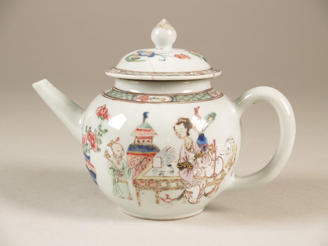 Theepot met decor van 2 scènes met vrouwen, famille rose (Q23796)