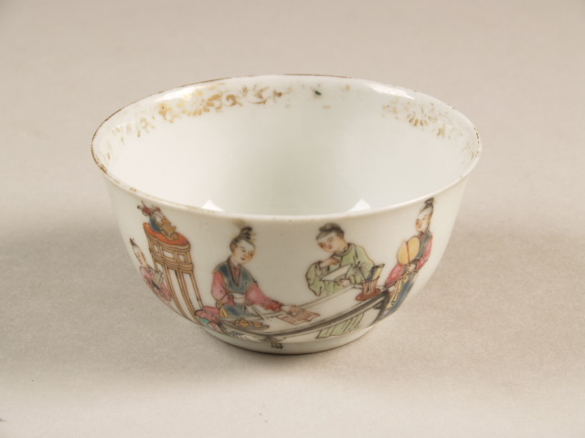 | Nederlands | Kom met decor van figuren aan tafel, famille rose |