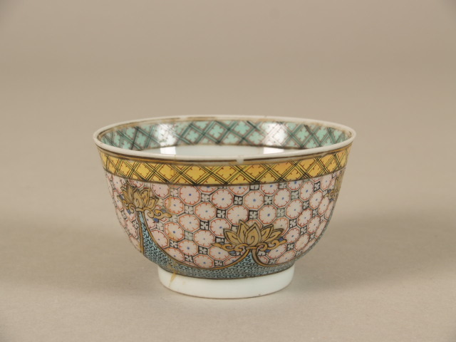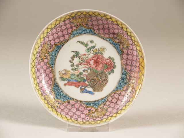 Kop en schotel met decor van bloemen, famille rose (Nederlands)