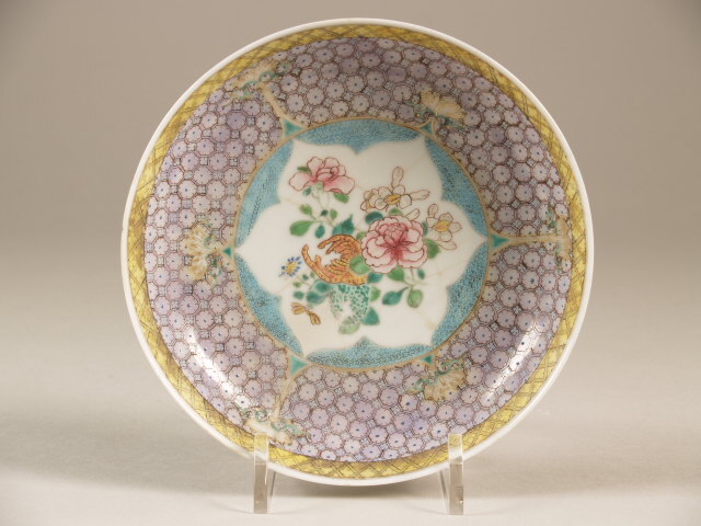 | Nederlands | Bord met decor van geschulpt medaillon waarin bloemen en ruitpatroon op de wand, famille rose |